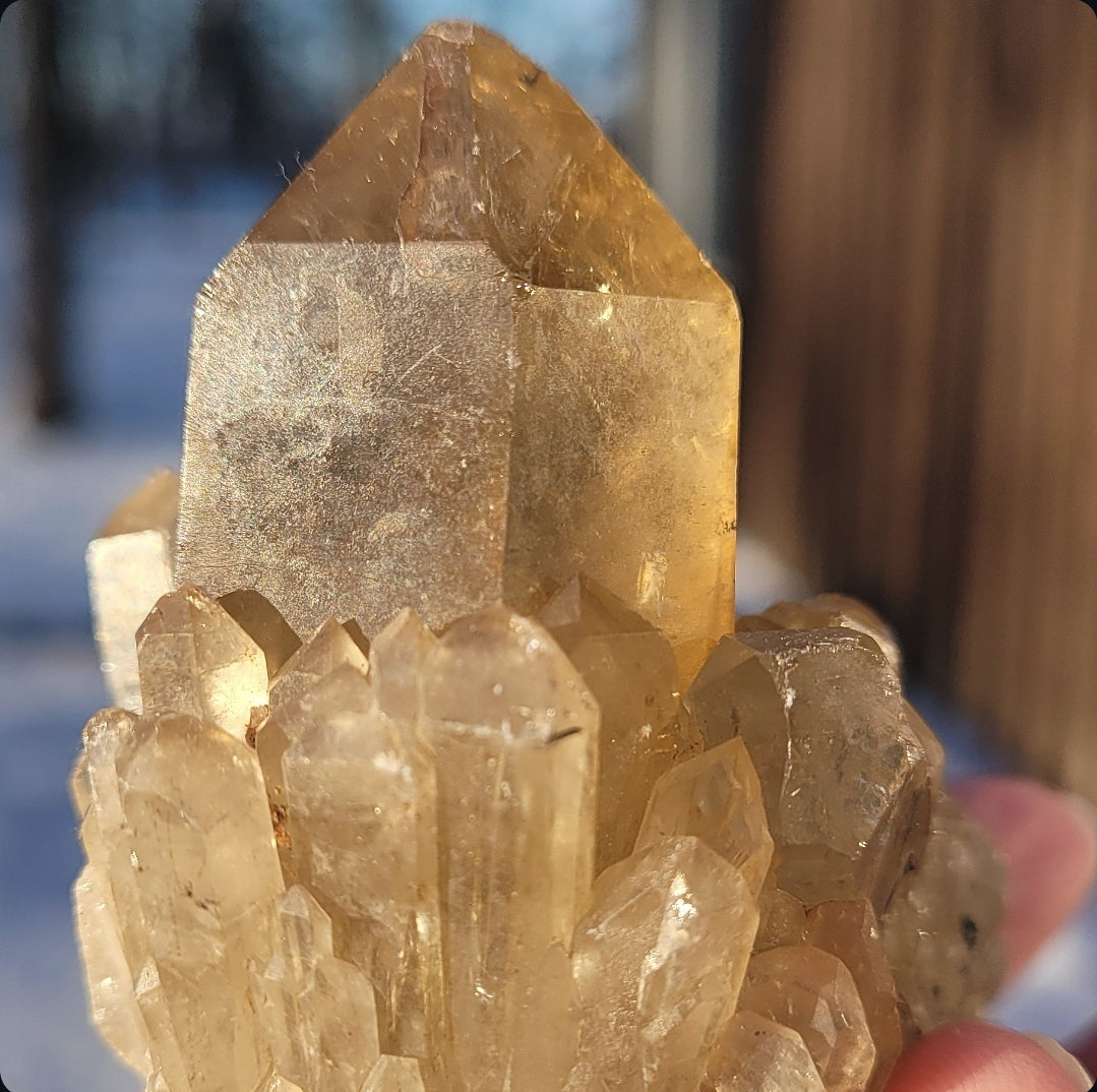 Elestial cluster of natural (not heat treated) citrine (kundalini citrine) specimen.